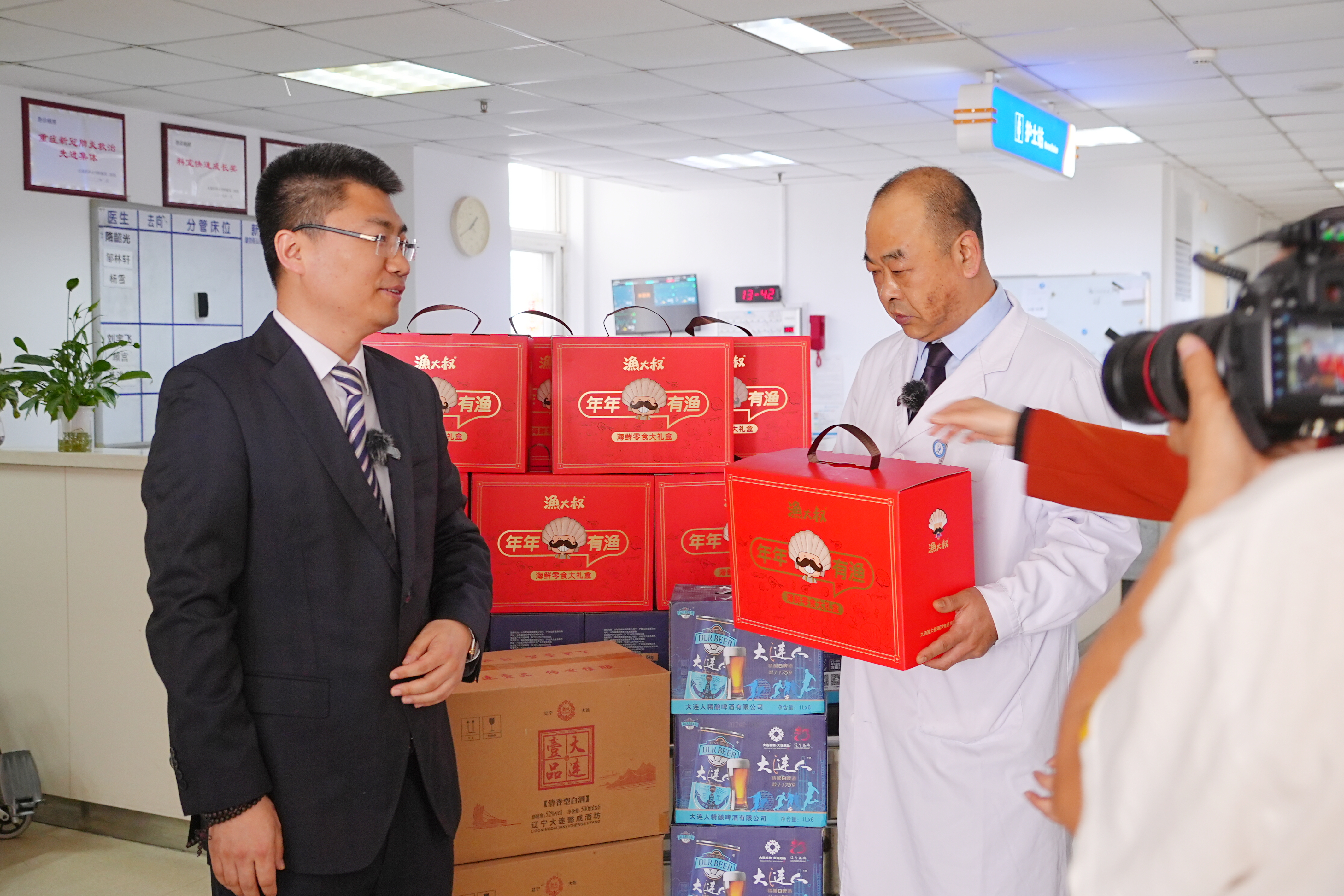 4月30日,在國際勞動(dòng)節(jié)到來之際,王振東董事長到大連醫(yī)科大學(xué)附屬二院急診科,向遼寧省五一勞動(dòng)獎(jiǎng)?wù)芦@得者隋韶光主任及一線醫(yī)護(hù)人員致以崇高的敬意和慰問,并準(zhǔn)備了漁大叔伴手禮,表達(dá)環(huán)島人的一片心意。
